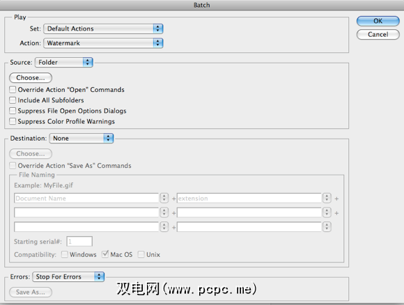 如果您想要创建一个动作,以便更轻松地对水印图像进行批处理,记录您选择采取的步骤并单击按钮即可对图像进行水印。