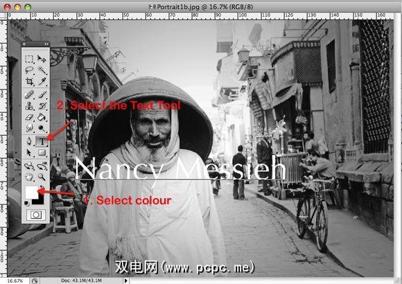 为图像水印,请首先选择您希望文本显示的颜色-我们建议您使用白色。接下来,选择“文本"工具,然后键入要显示为水印的文本。