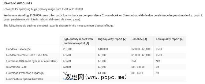 例如,Chrome奖励计划会向所有向Google报告Chrome缺陷的人提供金钱奖励。假设您具备成为黑客的技能,但实际上并不想触犯法律。告诉公司您所遇到的问题,您最多可以获得$ 15,000的奖励。