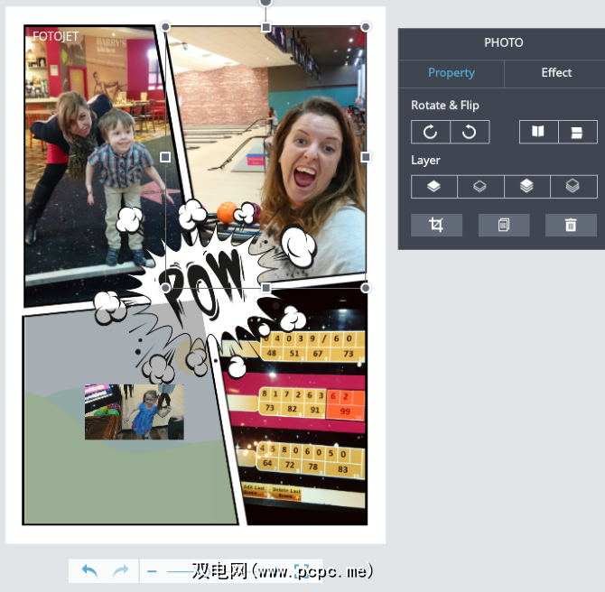 在此阶段,您可以添加 Text 和 Clipart (后者是您发现气泡的地方),然后调整模板的背景。最后,点击保存以将其下载到您的计算机。在此过程中,您可以选择共享,但也可以选择主要的共享选项。 FotoJet Photo Comic Maker可以共享内置的Facebook,Twitter,Pinterest和Tumblr。