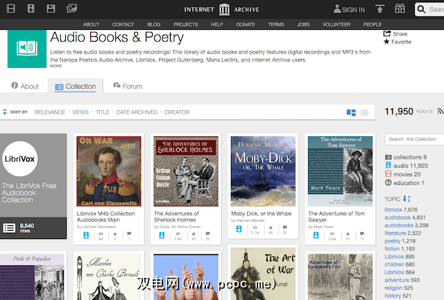 提供的有声读物也是Librivox文件,但在这里它们的组织性更好。类别中的细分非常细微,您可以轻松找到所需的内容。其他过滤器也使从谷壳中分离小麦非常容易。
