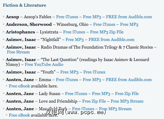 按字母顺序排列并分成iTunes,Audible,直接MP3文件,Zip文件,流媒体和YouTube之类的资源,这是一些著名的(而不是那么出名的)作家的绝妙选择。甚至Neil Gaiman都阅读了他的免费资料。为此页添加书签并经常参考。不幸的是,页面上没有新的RSS提要更新,这太可惜了。