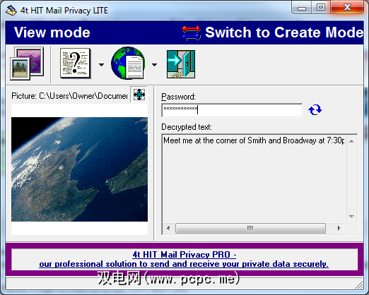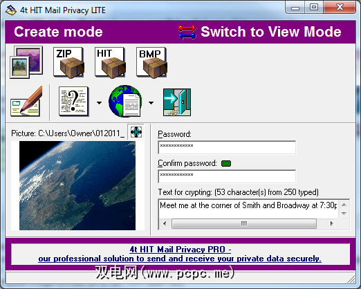 老实说,这可能是我最喜欢的应用,仅仅是因为它的凉爽性。使用“ 创建模式"中的软件打开任何图像,输入密码和消息,然后将其另存为.bmp,.hit。或.zip文件。
