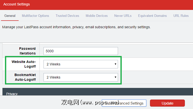 每次单击眼睛时,最好让LastPass提示您输入主LastPass密码。如果您尚未启用自动登出,它将阻止拥有您机器的某人不受限制地访问您的各种凭据。