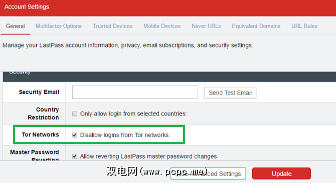 要阻止从Tor登录,请转至帐户设置>常规>显示高级设置> Tor网络。