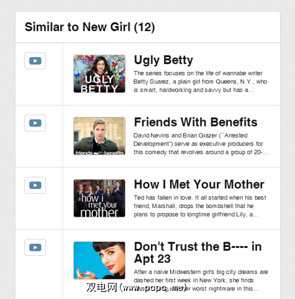 在根据您的喜好推荐类似的电视节目时,Clicker并没有提供很多便利。像Tastekid一样,只需搜索您选择的电视节目,并在右侧的侧边栏中,它将列出一些类似类型的相关节目。