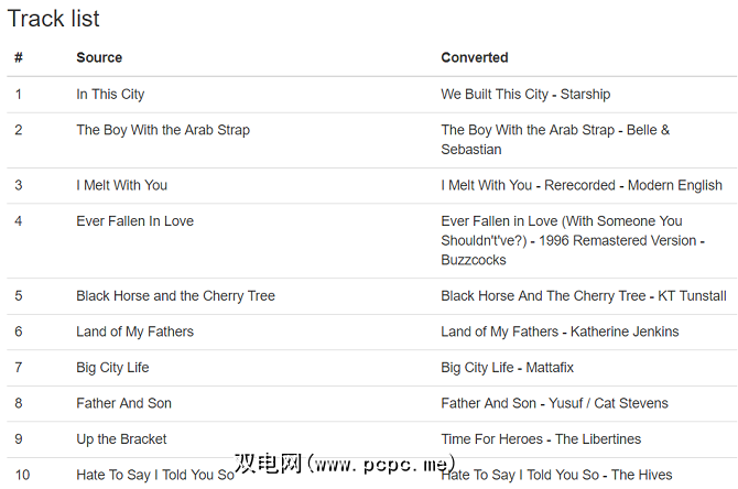 很遗憾,播放列表转换器是另一个不允许自定义曲目匹配的应用。此问题的严重性取决于播放列表中音乐的模糊程度。从上图可以看出,初始匹配并不总是准确的。转换过程完成后,您可能需要进行一些手动清理。