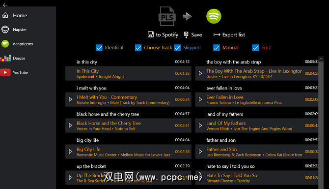 此应用仅允许您将播放列表与以下四种服务同步:Spotify,YouTube,Deezer和Napster。但是,与Soundiiz不同,您可以使用自己的选择覆盖播放列表转换器的默认曲目匹配。