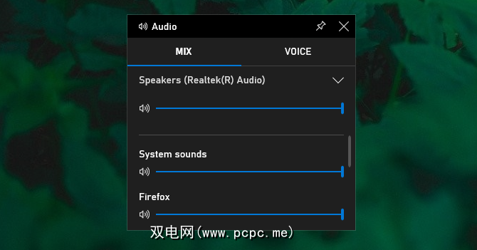 您可以控制扬声器的整体音量。系统,也可以控制单个应用程序。例如,如果您想在游戏中以低水平播放一些音乐,此功能很有用。或者,单击应用程序的扬声器图标将其完全静音。