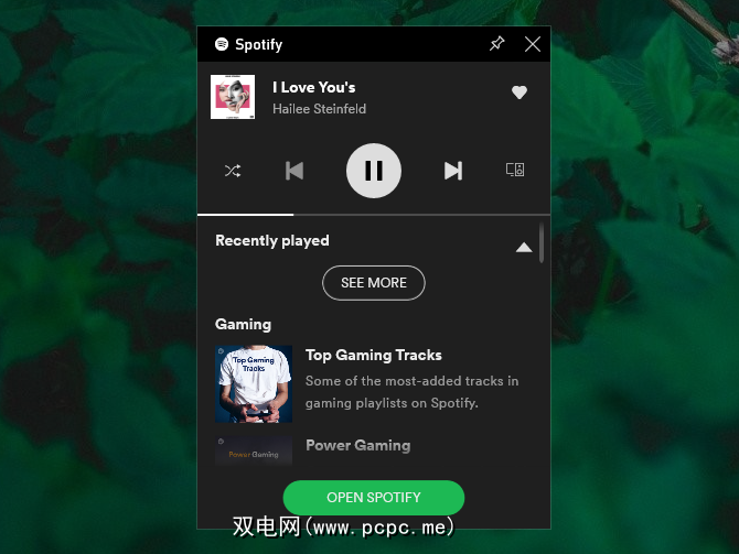 您可以使用面板即时控制Spotify(暂停,跳过,重复等),并在策划的游戏中弹出播放列表。如果您想要完整的Spotify功能,则需要打开应用程序本身,但是在执行多任务处理时,此处的控件应该为您提供了更多的功能。