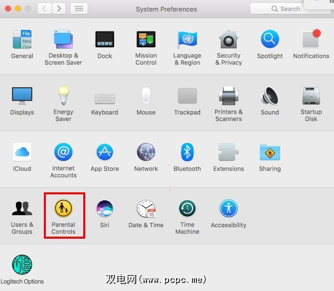 要开始使用家长控制,请访问苹果菜单在屏幕的左上角,然后选择系统偏好设置。然后,选择家长控制选项。这是一个黄色图标,里面带有一个父级和子级的轮廓。