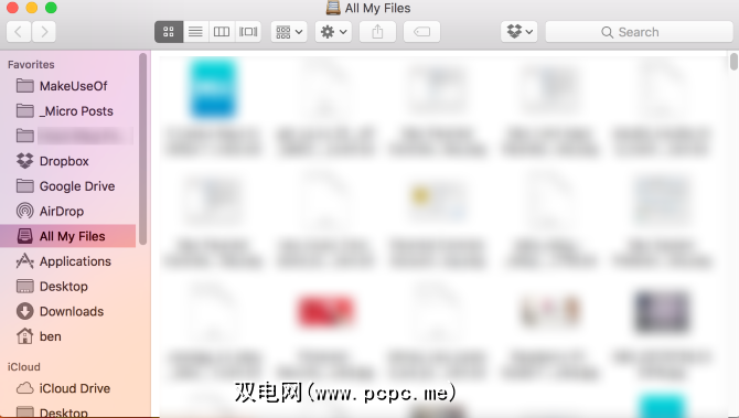 使用简单查找器选项位于其他选项卡上,使您的Mac文件系统更易于浏览。为了进行比较,下面是标准Finder视图的样子: