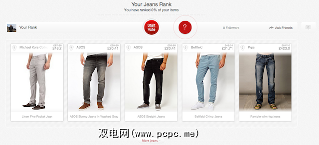您还可以将每件商品与另一件商品进行比较,以找到适合自己的衣服。通过投票消除您的过程。如果您仍然不确定,也可以询问您的朋友,前提是您的朋友在Facebook,Twitter或Pinterest上。