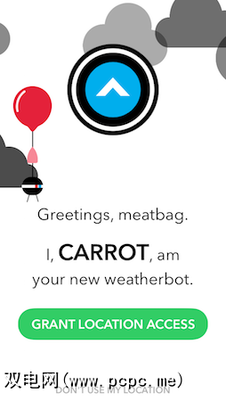 我不为所动,我决定给这个应用一个机会(很少有人称我为肉包)。授予CARROT使用GPS的许可后,您会看到当前的温度以及一天中不同时间的温度。我还收到有关刺客的不祥消息,看起来有人在扔我的玫瑰奖。