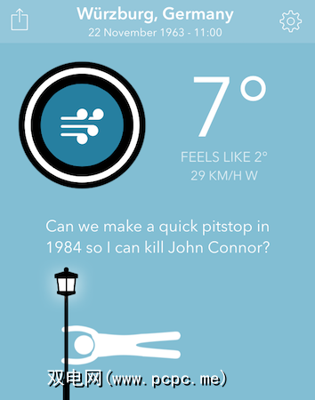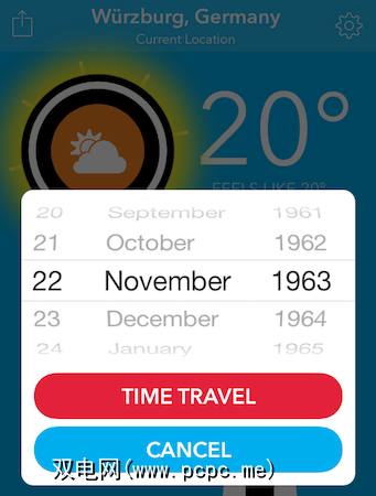 您还可以定时旅行,为您提供过去某个日期的天气信息。但是,为将来将来的天气条件提供的数据肯定是伪造的(不对)。