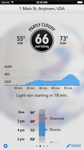 当您通过强大的位置修复方法时,最佳效果是最佳的提前一个小时预测下雨或下雪的机会。更好的是,由于天气通知是通过推送通知发送的,因此您甚至不需要打开应用程序。除此之外,该应用程序还具有一个小部件,您可以将其放置在您的通知中心以及Apple Watch应用程序中。