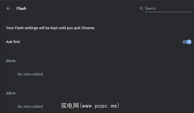 您可以完全阻止Flash或让网站要求使用Flash的许可。我们建议您改让Chrome寻求许可,因为您可能会遇到一些要检出的旧Flash内容。