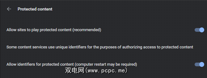 “受保护的内容"是指您在线访问的受版权保护的电影,音乐或其他媒体。为了获得最佳效果,应启用此选项,以便可以在Web上查看这种类型的内容。