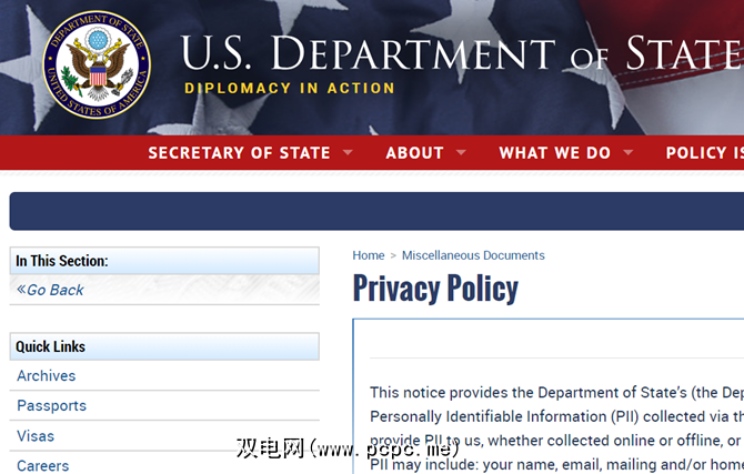 您要向访问者发布安全性措施的地方是您的网站隐私权政策。隐私政策中嵌入式安全部分的一个示例是美国国务院的示例。作为政府组织,建立围绕网站安全性的信任至关重要。