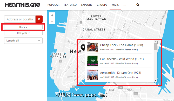 还有一个独特的功能,称为地图强>。只需键入一个位置并选择一个流派,它就会向您显示附近上传了符合您选择的曲目的任何人。