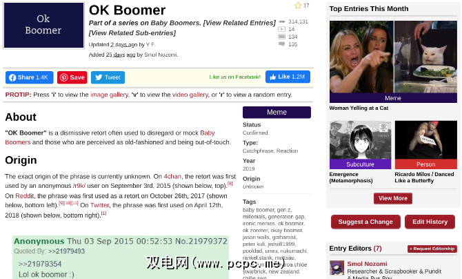 对于任何模因,您将获得有关其含义和用法的完整说明,以及有关它的大量可用信息。 。用户按首先使用它的模因的来源以及导致其病毒传播的事件进行搜索。您还会得到它最著名的用途,例如新西兰的政治人物在议会中如何使用“ Ok Boomer"。