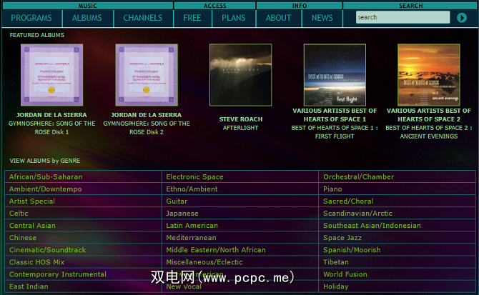 该网站专注于“太空音乐"。短语意思是什么?