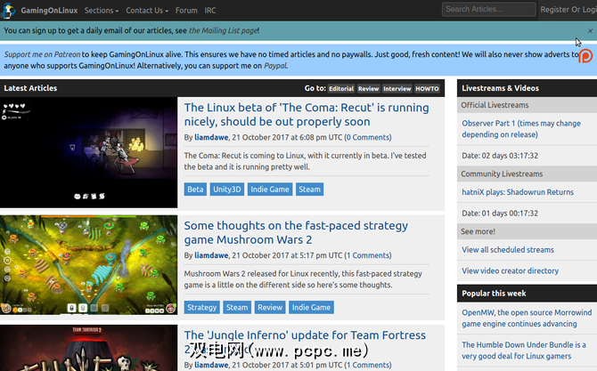 Linux上的游戏网站还设有Twitch频道,您可以在其中使用观看一些现场游戏。您还将找到一个社区论坛,IRC频道以及社区成员的直播。