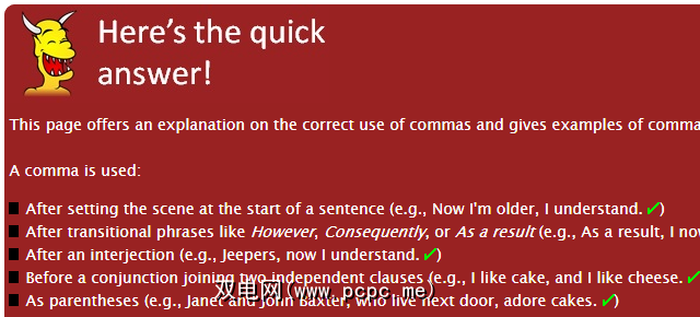 “怪物"是该网站的正确名称。它具有大量有关英语语法各个方面的信息。我一直为其他客户所困扰,一件事是我对逗号的热爱。只要我可以,我就用我所有的句子来表达爱,逗号,逗号。因此,这是逗号的主要部分,是我要阻止那些批评家的地方。