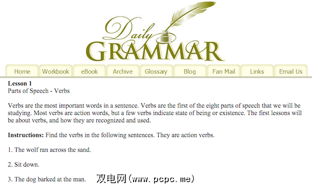 头版说有440课和88测验,涵盖了英语语法的每个领域。该博客提供每日测验,您可以通过电子邮件和RSS进行注册。 Daily Grammar还具有电子书,活动簿和工作簿。这些不是免费的,但您有免费的有限预览。