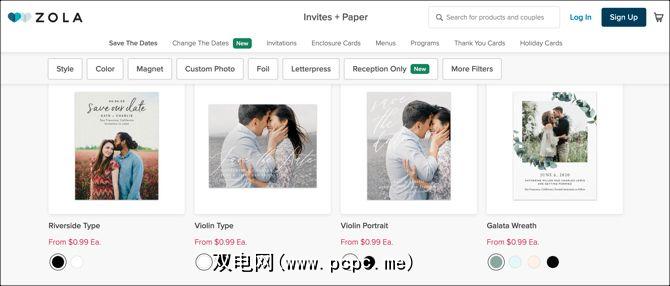 Zola是婚礼专用网站,例如The Knot。它提供免费的计划工具,婚礼网站,注册表和文具产品,包括“保存日期"和“更改日期"。
