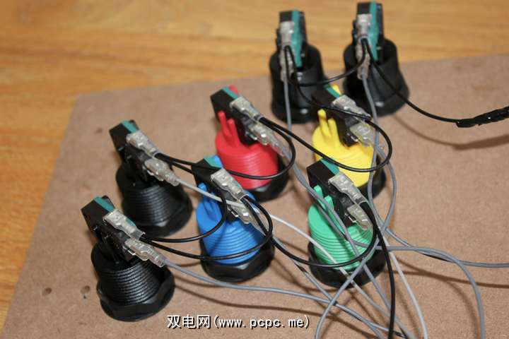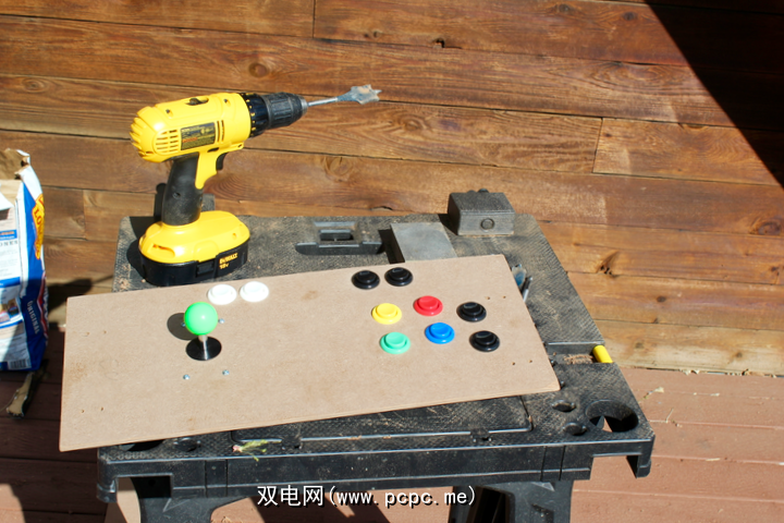 下一步是为按钮和操纵杆切孔。最简单的方法是使用铲子钻出大直径的孔。游戏杆需要插入一个3/4英寸的孔,然后需要4个螺钉将其固定。取下球的顶部,然后从背面插入操纵杆,将球重新拧紧,然后使用机器螺钉将操纵杆固定到面板上。这些按钮需要1-1 / 8英寸的孔。从按钮背面卸下微动开关,然后卸下塑料衬套,然后从顶部插入按钮,然后拧回衬套。现在,所有按钮和操纵杆都应固定在板上。