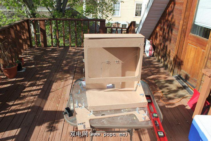 对于组装而言,我发现最简单的方法是固定所有部件,除了一个带有控件的面板,放在其中一个侧面板上,然后通过最后添加第二个侧面板将其关闭。这样可以确保您有尽可能多的空间来使用螺丝刀和棘轮来拧紧螺丝。我还在机箱后部增加了一个检修口,以使将来更容易进入机箱。搭建整个机箱,但将顶部面板的控制面板关闭,以简化接线。