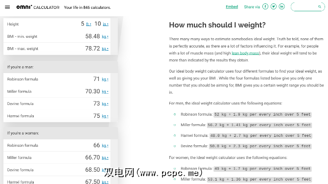 1。 Omnicalculator的理想体重(Web):理想体重应该是多少?