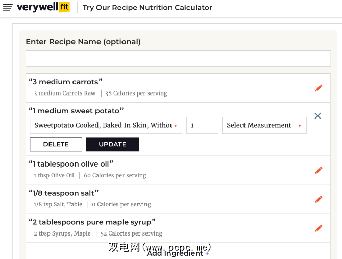 将成分列表复制粘贴到文本框中,就像在任何在线食谱中看到的那样。这意味着每条线及其数量都是一种成分。单击“分析配方"后,您会发现某些项目无法识别,但是Verywell Fit允许您快速编辑这些项目以匹配其数据库中的某些项目。