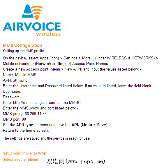 AirVoice Wireless采用了所有MVNO中最详细的设置说明之一。只需导航到他们的说明并输入您的手机型号即可。
