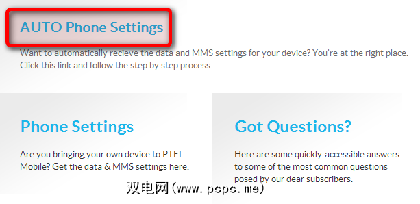 Ptel Mobile除了手动输入APN的选项外,还包括一个自动APN设置配置器。我建议至少看看自动配置器并输入您的IMEI号码。此方法会将APN设置直接发送到您的手机。它还包括 iPhone配置说明。