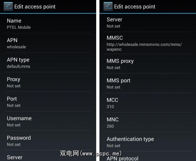 收到配置设置后,请注意,除非特别提示,否则无需更改设置。因此,例如,如果您的MNC设置为260,除非您的MVNO要求您进行更改,否则请勿更改此设置。