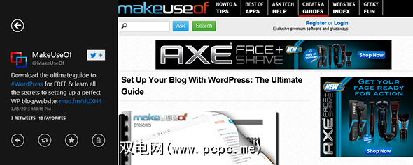 Twitter几年前发布了正式的Mac应用程序,但始终没有推出Windows版本。直到Windows 8出现为止。这个新版的Twitter占据了整个屏幕,但不要认为所有空间都是浪费的。在应用程序中打开了链接,使您无需离开Twitter即可阅读文章和查看图片。