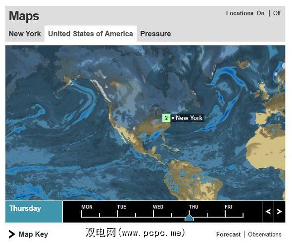 天气网站的标准-当前情况,以及短期和长期预测都包括在内。但是,还有一个很棒的地图功能,可让您查看本地,国家或全球正在开发的天气系统。也有一些图表可以提供对各种天气因素(例如大气压和等压线)的详细分析。