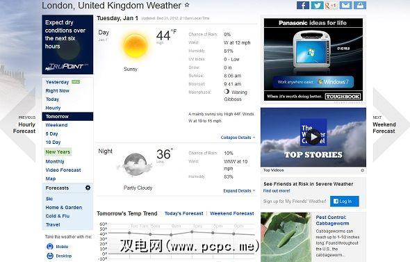 天气频道是气象网站上许多人的第一通电话。这部分是由于它享有良好的声誉,部分是由于weather.com的杀手级域名。该网站以简单易用的格式提供准确的天气预报,它是此列表中最类似于我们许多人在电视上看过的天气预报的一个天气预报。