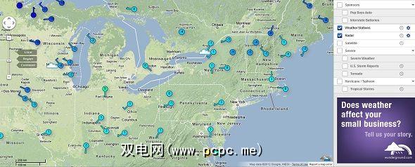 这些数据全部以文本和视觉格式混合呈现,但是如果您的大脑无法接受,那么单击WunderMap可以提供一种更简单的方法来查看外部发生的事情。您可以更改地图的类型或显示的数据,并添加额外的图层以获取有关您所处天气的整体图片。