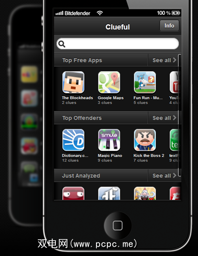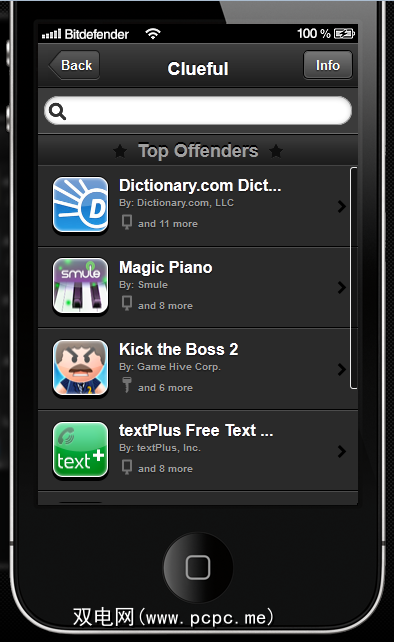 线索是一个简单的Web应用程序,可让您访问BitDefender对许多流行的iOS应用程序的分析。 Clueful的外观设计类似于iOS应用程序,其布局类似于iPhone,并且该应用程序本身受鼠标控制的“触摸"手势的控制。