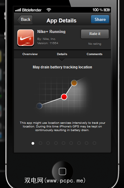 在详细信息屏幕中,您会找到有关该应用可以执行的操作以及对您的影响的进一步说明。例如,Nike + Running应用程序可以跟踪您的位置,这很有意义,但它也可以很快耗尽电池电量。