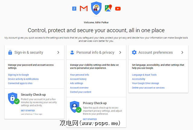 在这里,您可以管理通过Google服务向全世界显示的个人信息。也许更重要的是,在这里您还可以找到Google正在收集的有关您的信息,并关闭其中的一些信息。