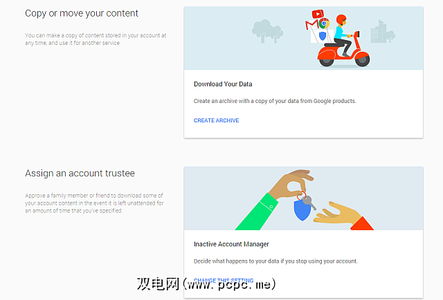转到控制您的内容>无效帐户管理员>更改此设置,然后完成设置过程。这是重要的方面,可确保您的Google帐户在长时间不活动的情况下不会落入他人之手,或者确保您的近亲在死后可以访问您的Google帐户。您还可以在不活动时设置自动响应,或向自己发送警报。或者,您也可以将帐户设置为在超时后删除。下载控制您的内容>复制或移动内容>下载您的数据以获取所有Google数据的存档。它可以是一个巨大的文件,但是备份总是一件好事。希望您已经获得了100GB的OneDrive云存储空间,可以安全地将其上传到云中,除非有紧急情况,否则不必担心。帐户首选项