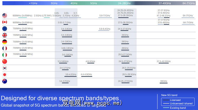说到频率,5G的运行范围很广。频率范围比以前的所有网络都要大,从600MHz到71GHz。