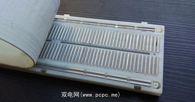 如果您要拉出其中任何一个金属片,就会看到它们的用途。它们旨在抓住通过面包板孔推入的所有组件的腿。这样一来,您就可以测试电路而不必担心焊接或与电路板良好接触。