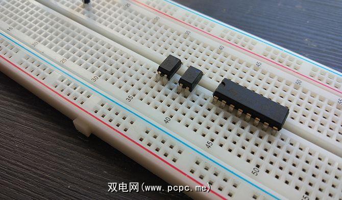 看到面包板中间的小缝隙了吗?出现这种差距是有原因的。集成电路!