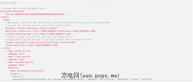 这会加载您可以编辑的cloud-config文件。 CoreOS包括一个高级的云配置示例文件: