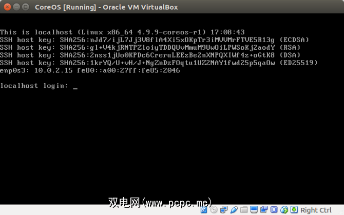 CoreOS将加载,并且您将在命令行中出现登录提示: